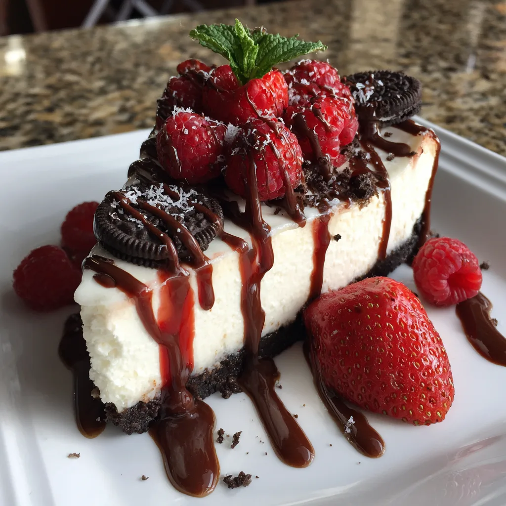 An easy and creamy no-bake cheesecake made with just three simple ingredients—Oreos, cream cheese, and whipped topping—for a quick and indulgent dessert.