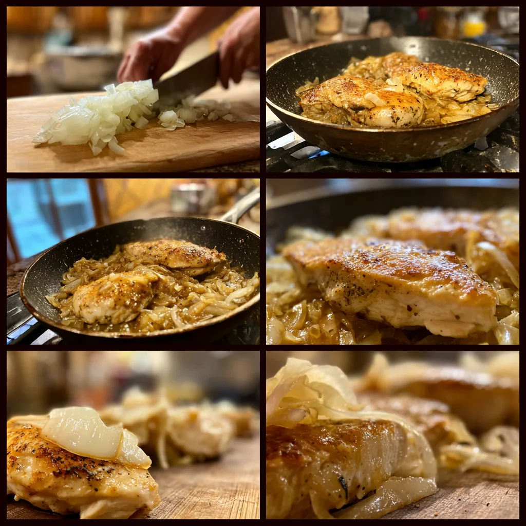Once the chicken is cooked, transfer the caramelized onions to the pan with the chicken. Add a small splash of chicken broth and gently scrape the bottom of the pan to release the browned bits. This step enhances the overall flavor of the dish.