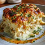 Chicken Alfredo Lasagna is a rich and satisfying dish that combines the comfort of traditional lasagna with the creamy elegance of Alfredo sauce. Instead of a tomato-based filling, this version layers tender chicken, velvety cream sauce, pasta sheets, and plenty of cheese for a meal that feels indulgent and hearty. What I enjoy most about this recipe is how balanced it is. Despite its richness, it does not feel overwhelming, and each layer contributes something distinct. When I first prepared this dish, I used leftover roasted chicken, and it blended seamlessly into the creamy sauce, making the recipe both practical and flavorful. This lasagna is ideal for family dinners, gatherings, or make-ahead meals when you want something comforting yet elevated. It slices cleanly, reheats beautifully, and always earns compliments at the table.
