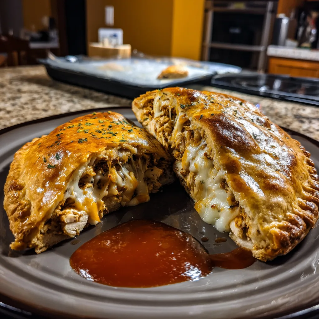 This dish provides protein from chicken and cheese, fats from dairy and crust, and carbohydrates from the pastry. It is filling and well-suited for hearty meals.
