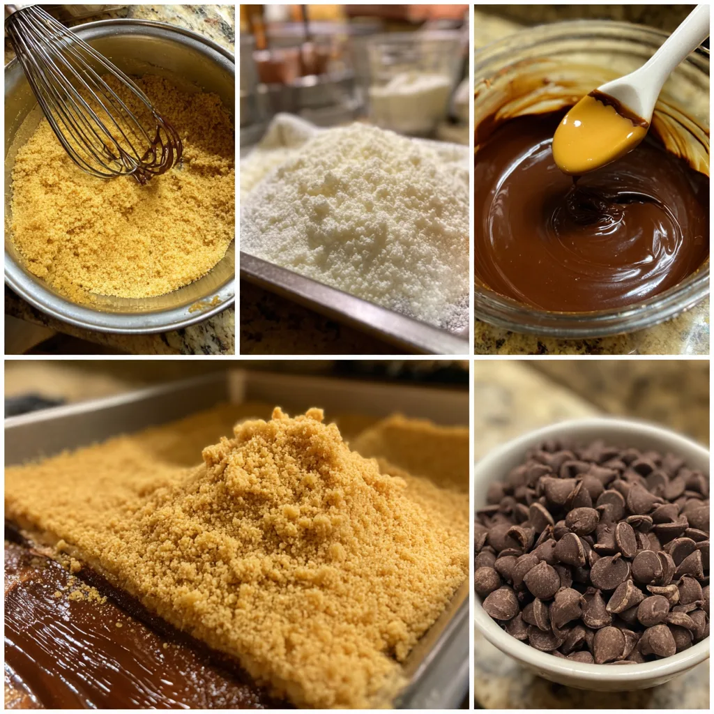 Start by preparing an 8×8-inch baking pan and lining it with parchment paper, leaving some overhang for easy removal later. In a medium bowl, combine the graham cracker crumbs with melted butter and mix until evenly coated. Press this mixture firmly into the bottom of the prepared pan to form an even crust. Place it in the refrigerator to chill for about 20 minutes.