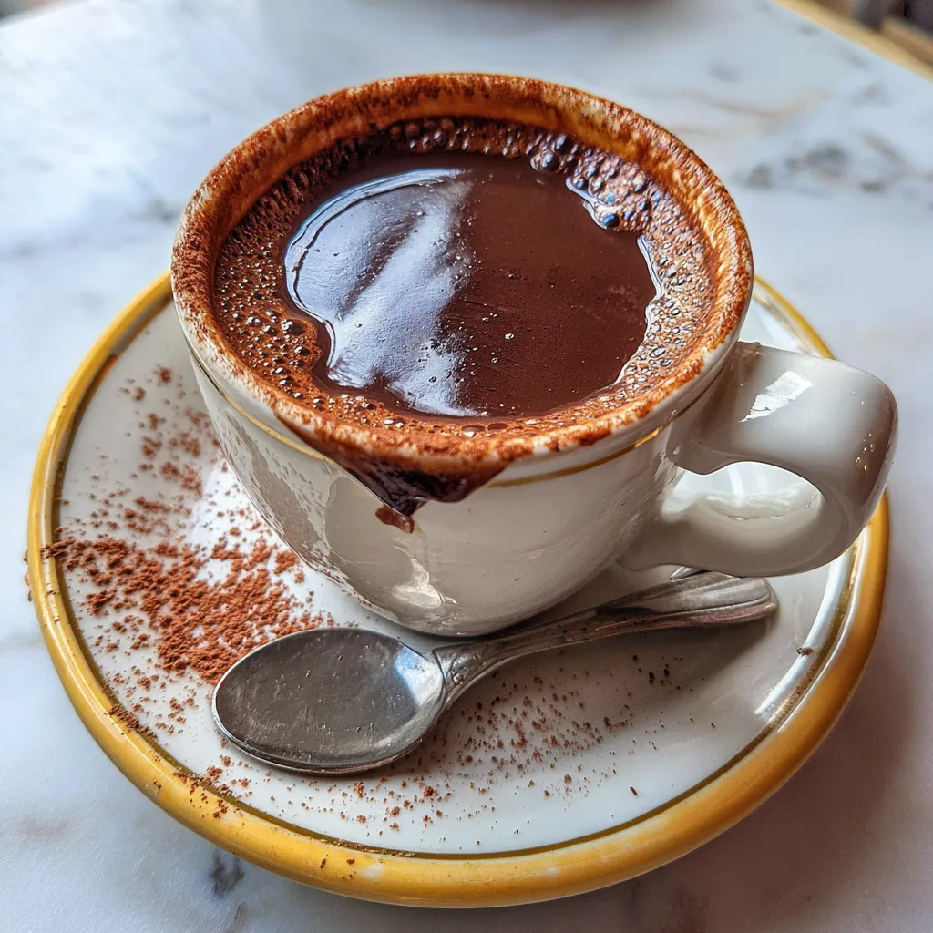 Cioccolata Calda is a rich and luxurious Italian-style hot chocolate made with real dark chocolate and milk, thickened to a silky, pudding-like consistency for an indulgent winter treat.