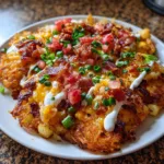 This recipe transforms simple shredded potatoes into a crowd-pleasing centerpiece. The crispy base contrasts perfectly with creamy and savory toppings. It is easy to prepare, customizable to individual tastes, and works well for gatherings or family meals. You can cook it in one large skillet for sharing or portion it into smaller servings. It is comfort food elevated with texture and flavor.