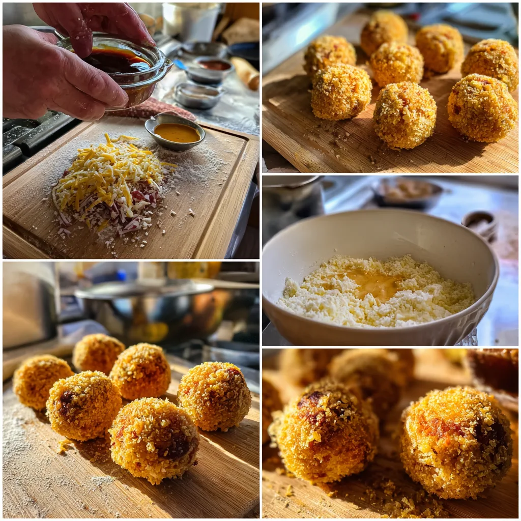 Set up a breading station with a beaten egg in one bowl and breadcrumbs in another. Dip each chilled ball into the egg, then roll in breadcrumbs until fully coated.