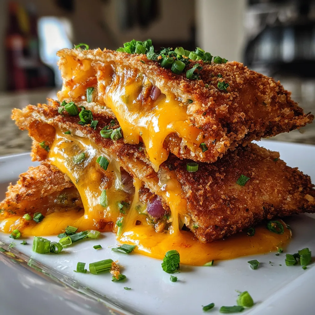 Crispy fried Doritos stuffed with gooey melted cheese, coated in a crunchy breading and deep-fried to golden perfection for an irresistible snack.