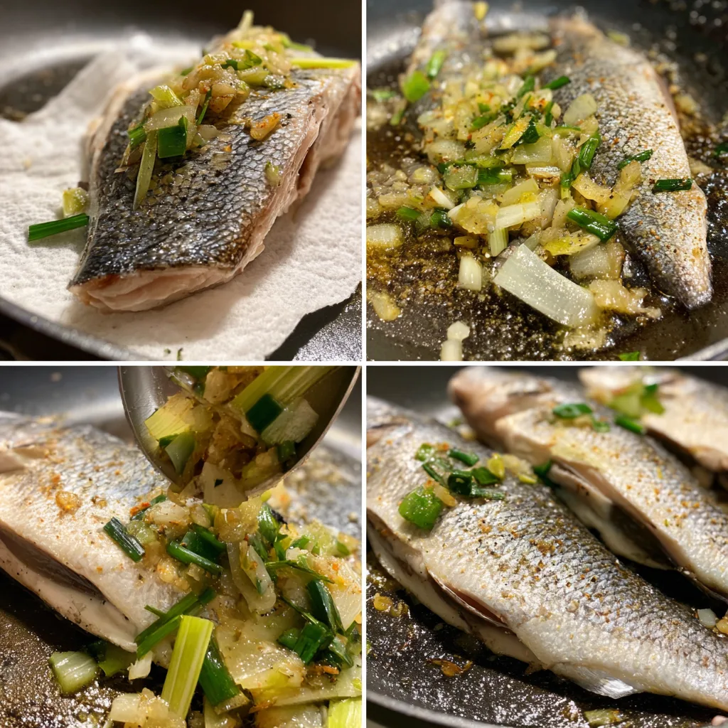 This recipe offers crisp texture, bold aromatic flavor, and quick preparation. It uses simple ingredients while producing impressive results. The combination of ginger and green onions enhances the natural flavor of sea bass without overwhelming it. It is a balanced, protein-rich dish that pairs beautifully with rice or vegetables.