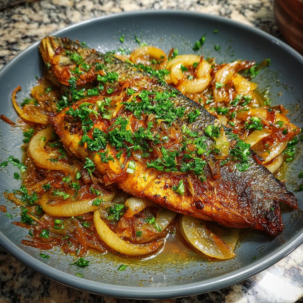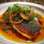 Ginger Onion Fried Sea Bass is a beautifully balanced dish that highlights the delicate sweetness of fresh fish while layering it with bold aromatics. The crispy exterior contrasts perfectly with the tender, flaky interior, and the fragrant combination of ginger and green onions brings a comforting yet vibrant flavor. The first time I prepared this at home, I was surprised by how simple techniques could create such refined results. The key lies in proper seasoning, careful frying, and finishing the dish with freshly cut aromatics that release their fragrance in the heat. This recipe delivers restaurant-quality results without complicated steps, making it ideal for both weeknight dinners and special gatherings. Served with steamed rice, it becomes a complete and satisfying meal that feels elegant yet deeply comforting.