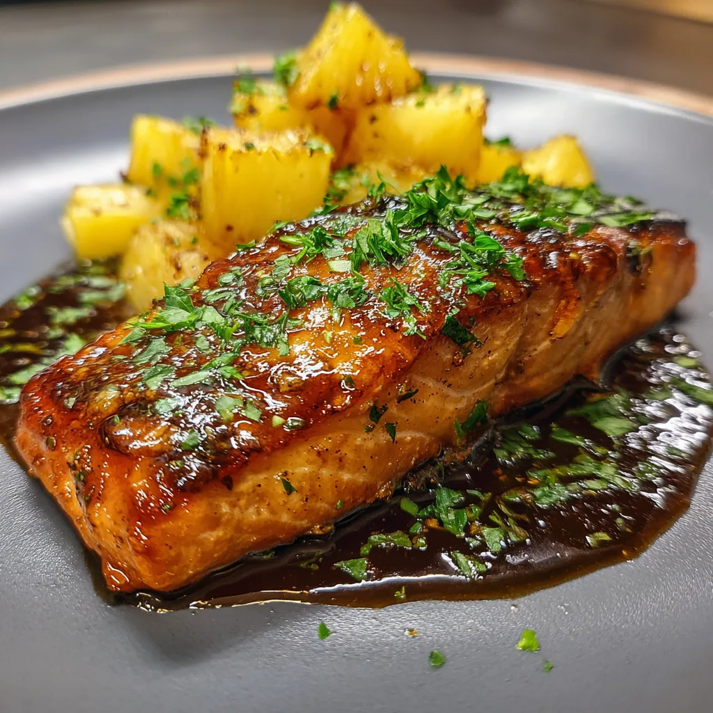 Tender salmon fillets glazed with a sweet and tangy honey pineapple sauce, perfectly caramelized and bursting with tropical flavor.