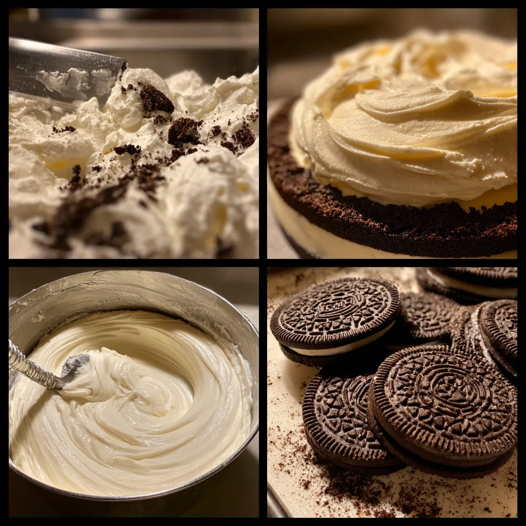 Extra crushed Oreos are folded into the filling for added crunch and visual appeal, making every bite more indulgent.