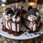 A rich and creamy Oreo no-bake cheesecake with a crunchy cookie crust and smooth chocolatey filling, perfect for an easy dessert.