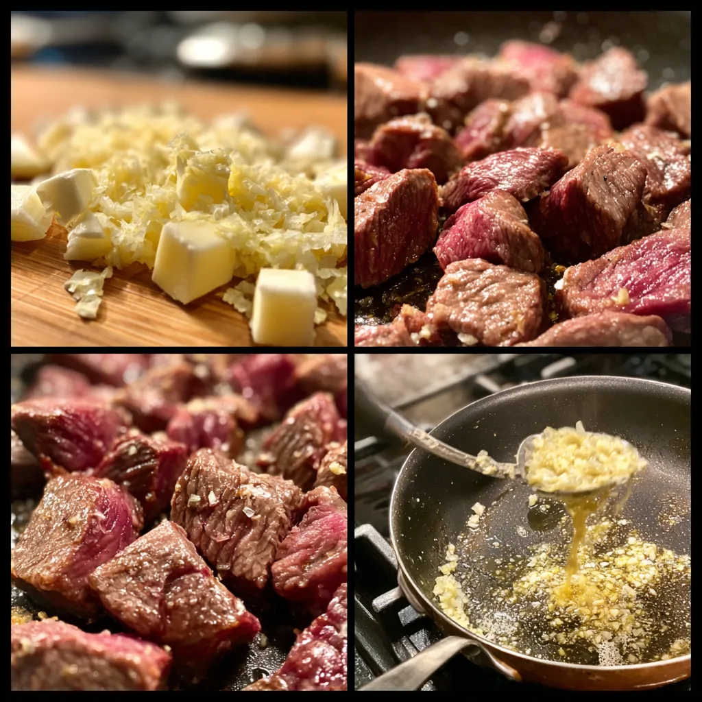 Butter creates the rich base of the sauce. As it melts in the skillet, it coats the steak bites and enhances their natural flavor. The butter also combines with the garlic to produce the signature aroma of this dish.