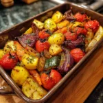 This recipe is easy, healthy, and requires minimal cleanup thanks to its one-pan preparation. The vegetables roast evenly and develop rich flavor without complicated steps. It is naturally vegetarian, highly customizable, and perfect for meal prep. The combination of herbs, olive oil, and lemon creates a balanced, fresh taste that complements nearly any main course.
