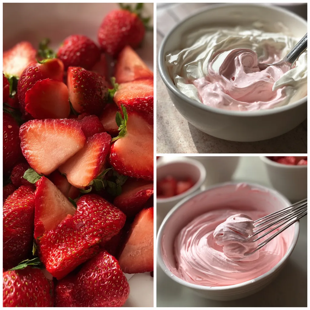 A light and airy strawberry mousse made with fresh strawberries and whipped cream, perfect for a refreshing and elegant dessert.