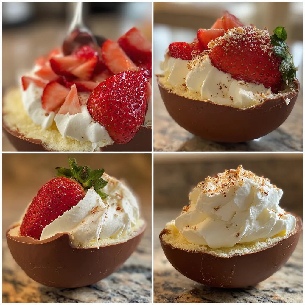 A festive and sweet Easter treat made with layers of soft cake, fresh strawberries, and whipped cream, shaped or decorated like Easter eggs for a fun holiday dessert.
